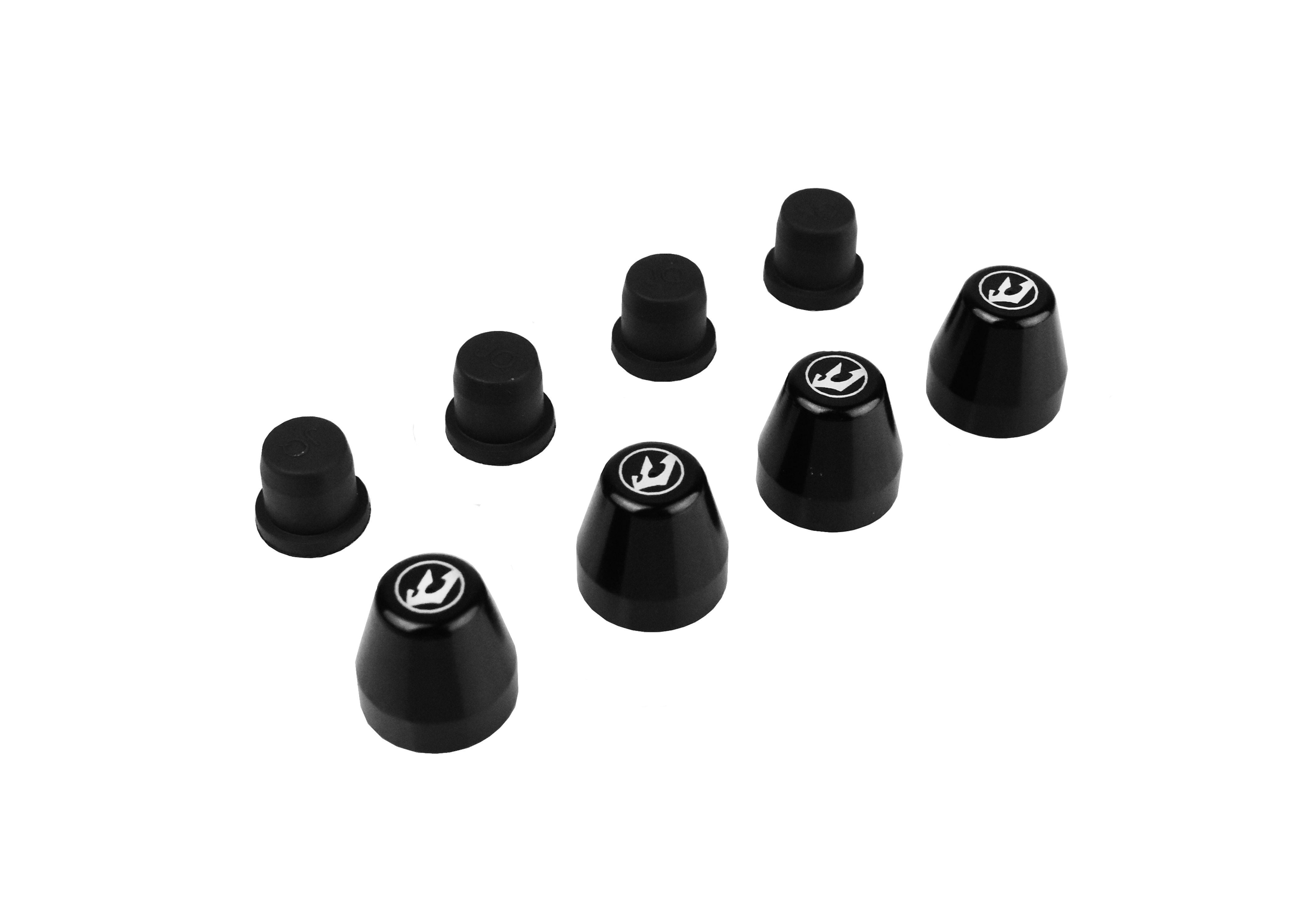 Machined out of 6061 billet rod and using a rubber bushing to hold the cover in place. This cover is both attractive and functional. Available as a set of 4 to handle front and rear calipers and front master cylinder. The cap is available in 5 anodized colors black,blue,red,gold and silver with the driven logo etched on top.